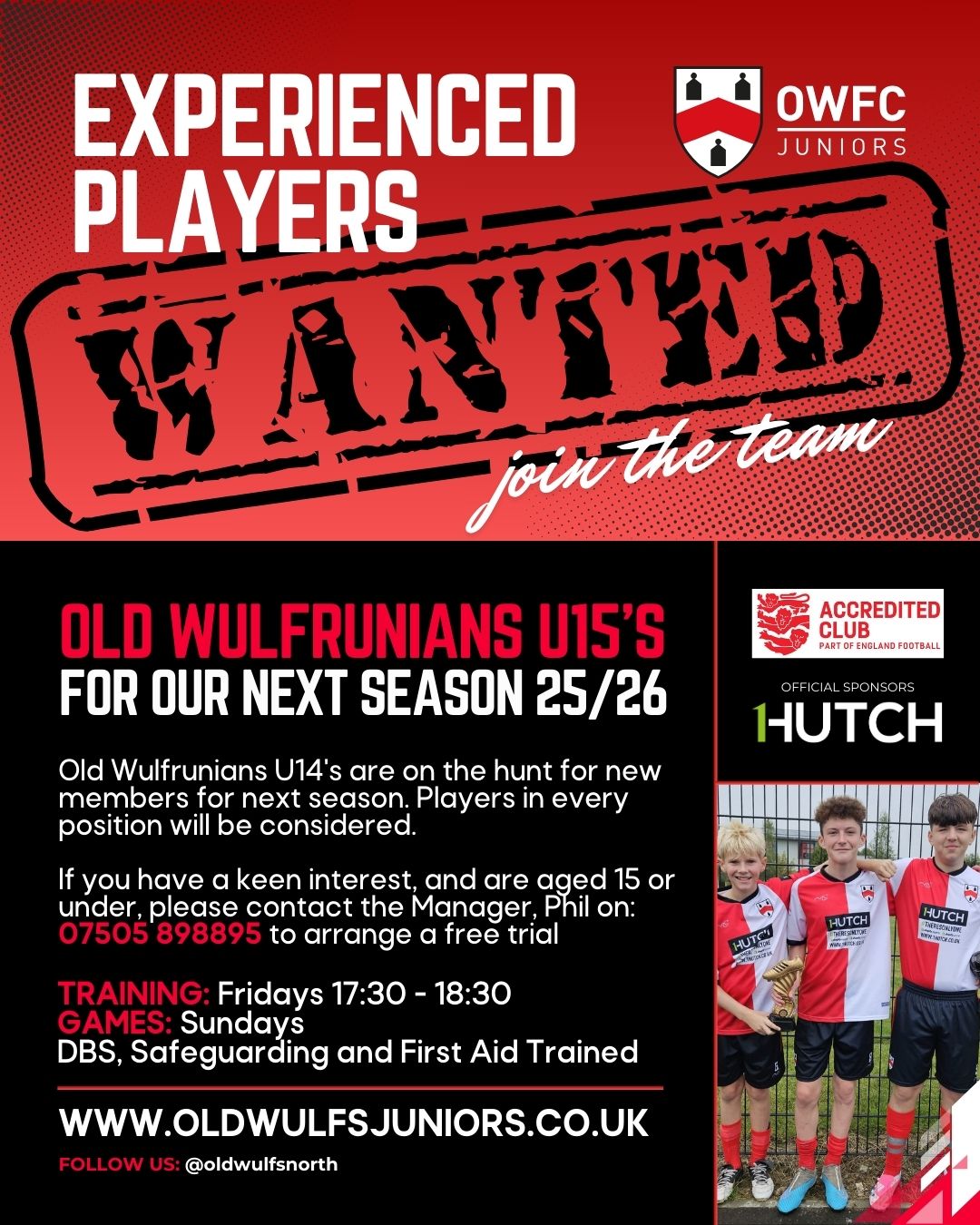 🚨 *Old Wulfs U14s – Players Wanted!* 🚨